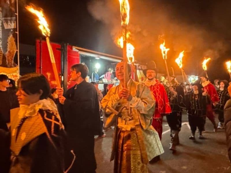 南蛮行列の有馬晴信公に代表理事が扮装して、