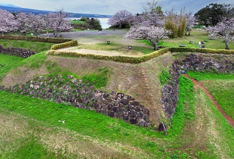 島原半島南島原市北有馬町の日野江城城址の本丸の城壁。