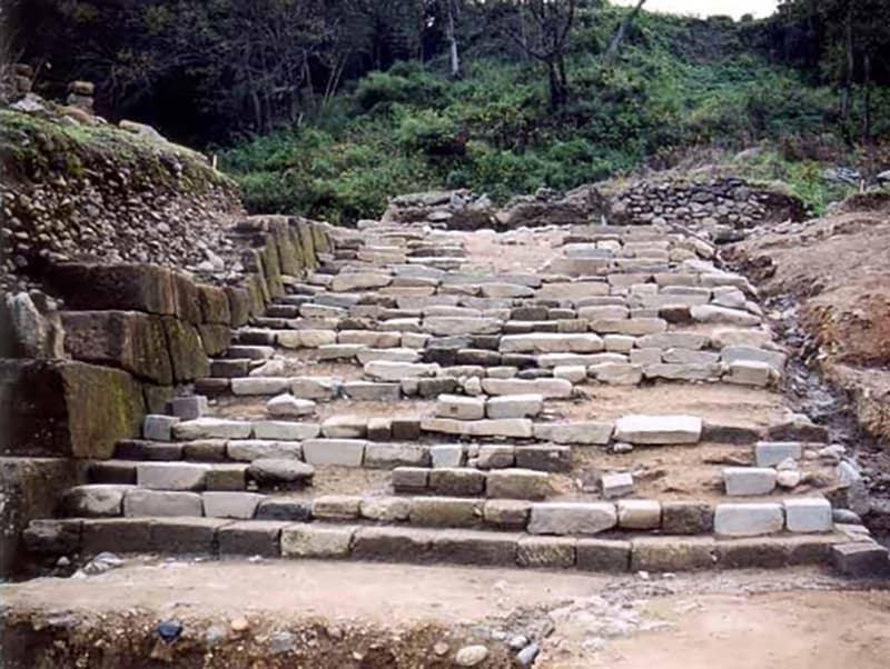 日野江城の海側から二の丸へ連なる大手門の石階段。