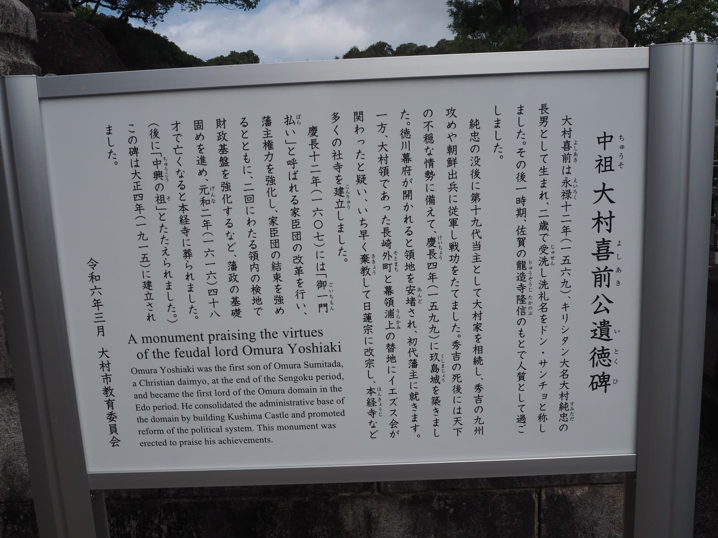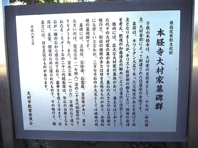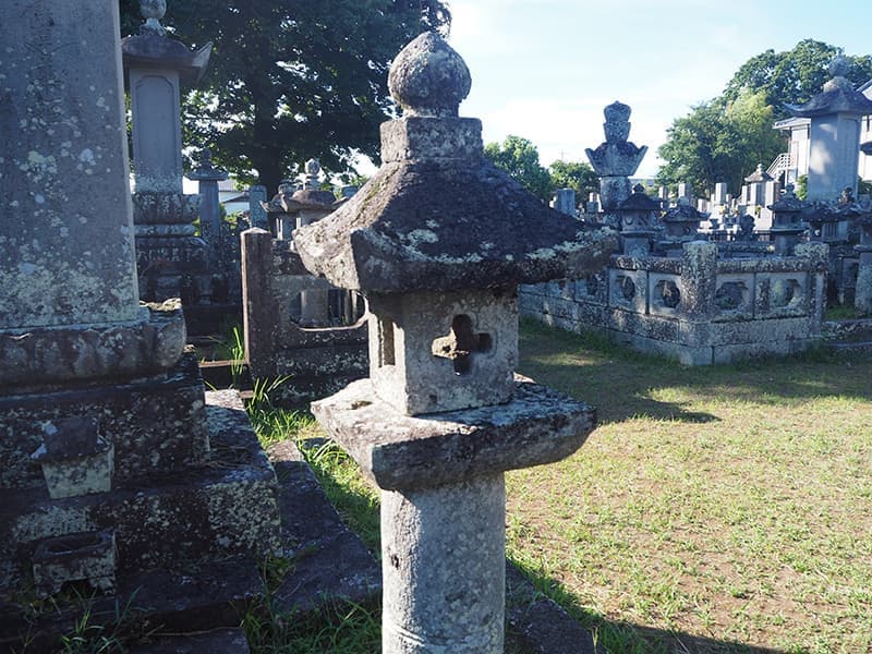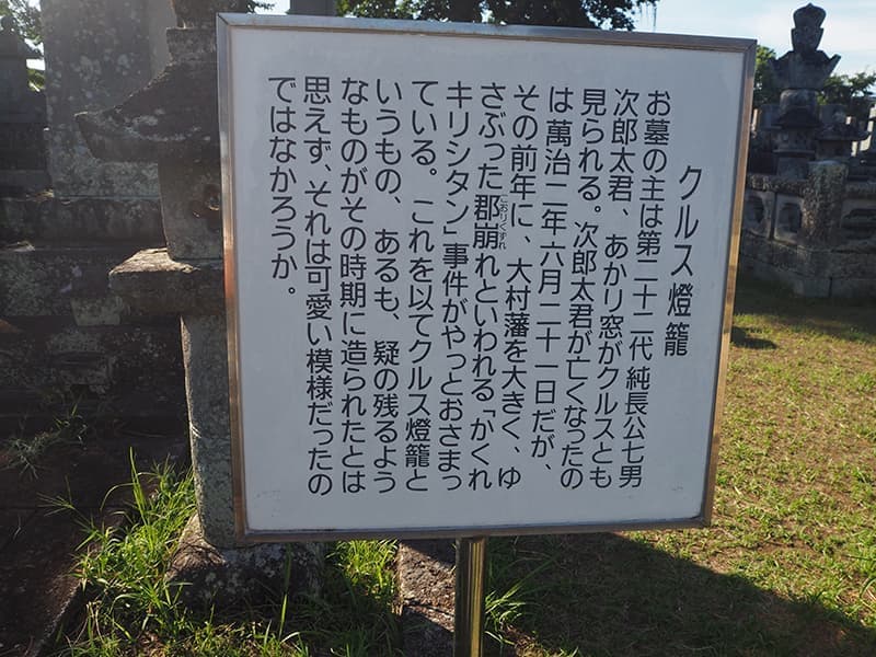 キリシタン大名の大村家の墓地のクルス灯篭はキリスタンの影響