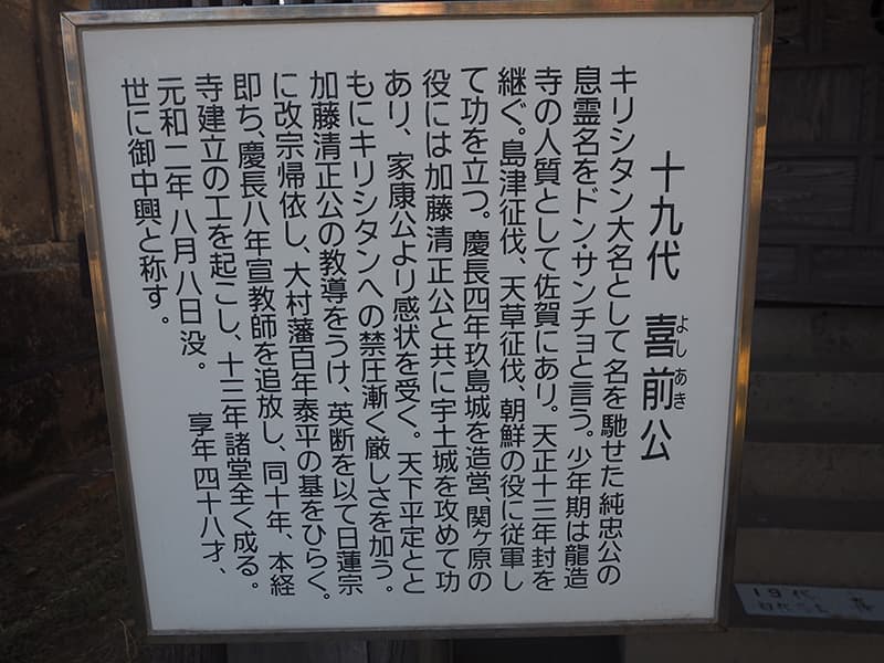 南島原市には有馬家の墓は無い。1614年に宮崎県延岡市の延岡城に一族郎党は移転した。
