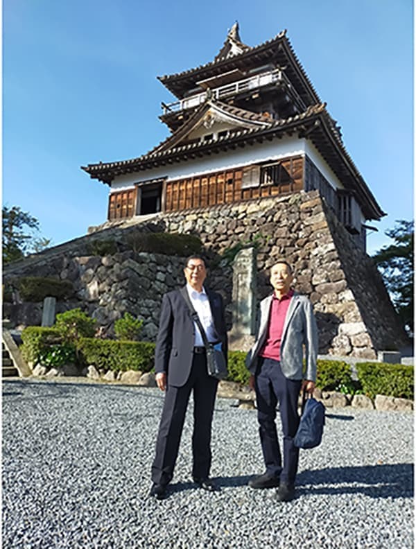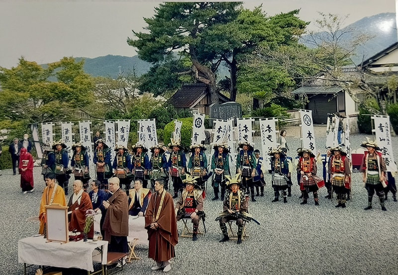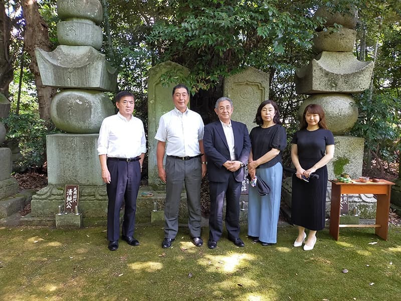 高岳寺の有馬家歴代城主の法輪塔の前の丸岡有馬財団の役員達。