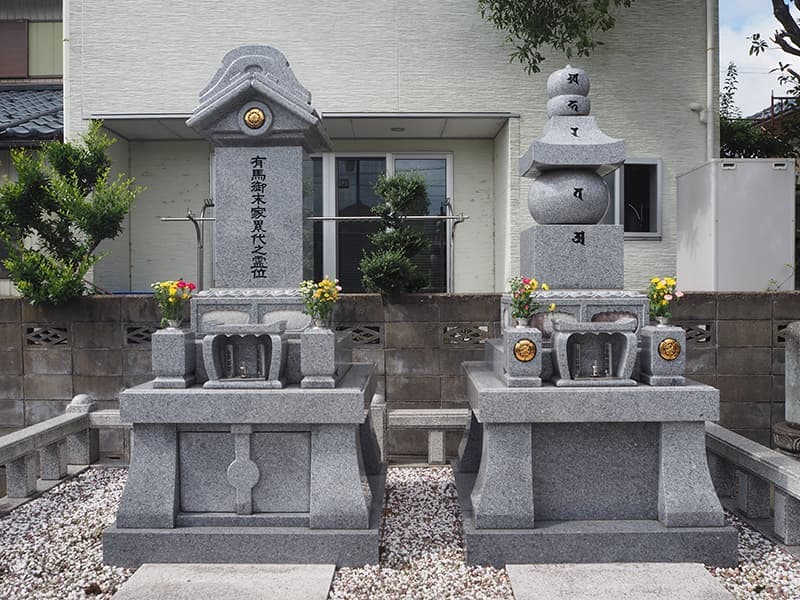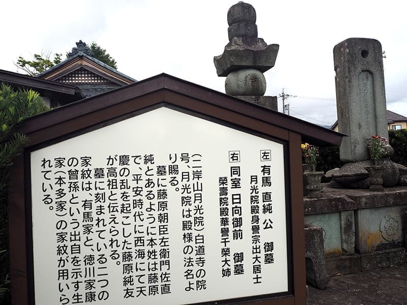 丸岡町の有馬家菩提寺のひとつ、浄土宗白道寺の有馬直純と正室国姫の墓