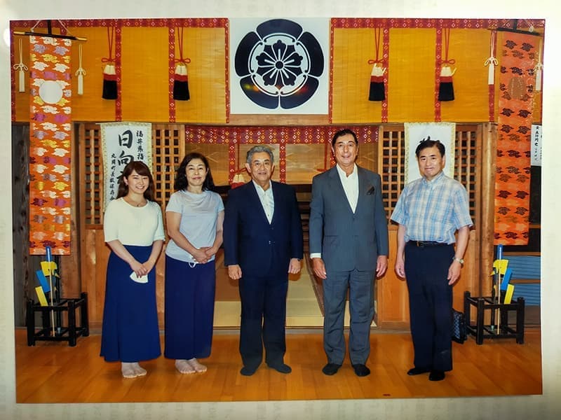 右から理事 宮崎栄一、代表理事 有馬康陽、理事 有馬資明、監事 有馬美香、その娘 有馬京子