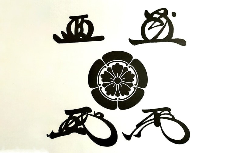 有馬家の家紋の周りに有馬城主の花押を四隅に配置したデザイン。