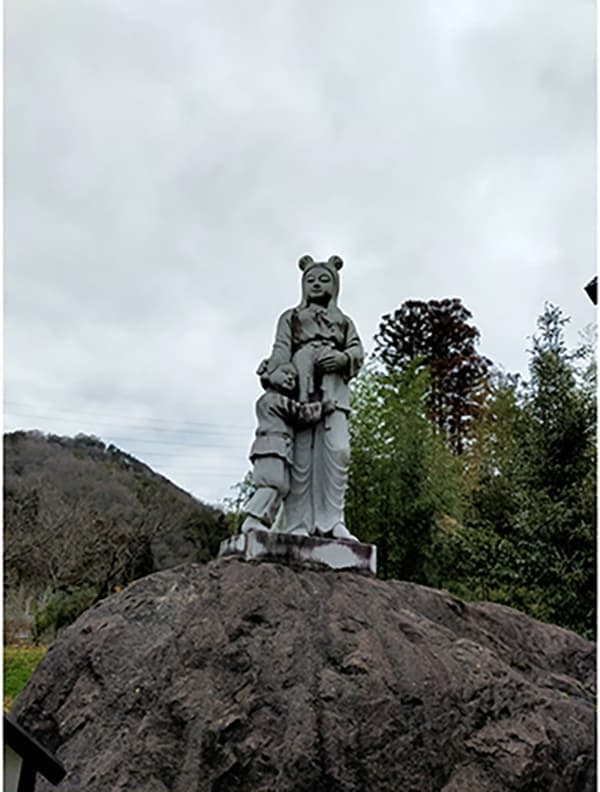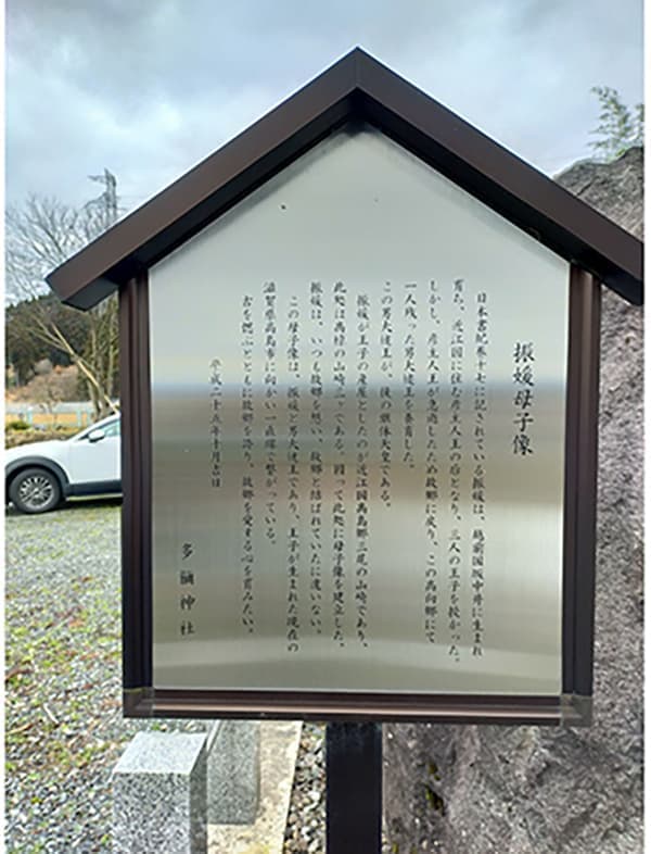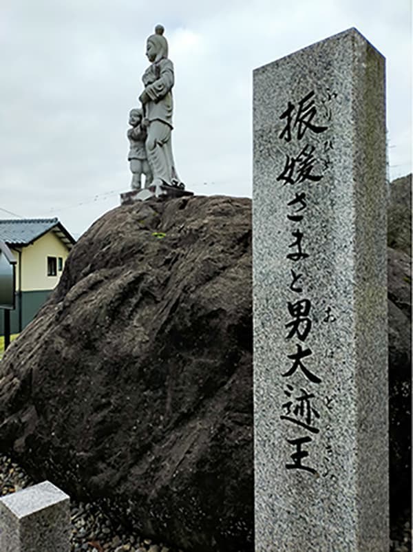 丸岡町の多禰神社の振姫と継体天皇の石像