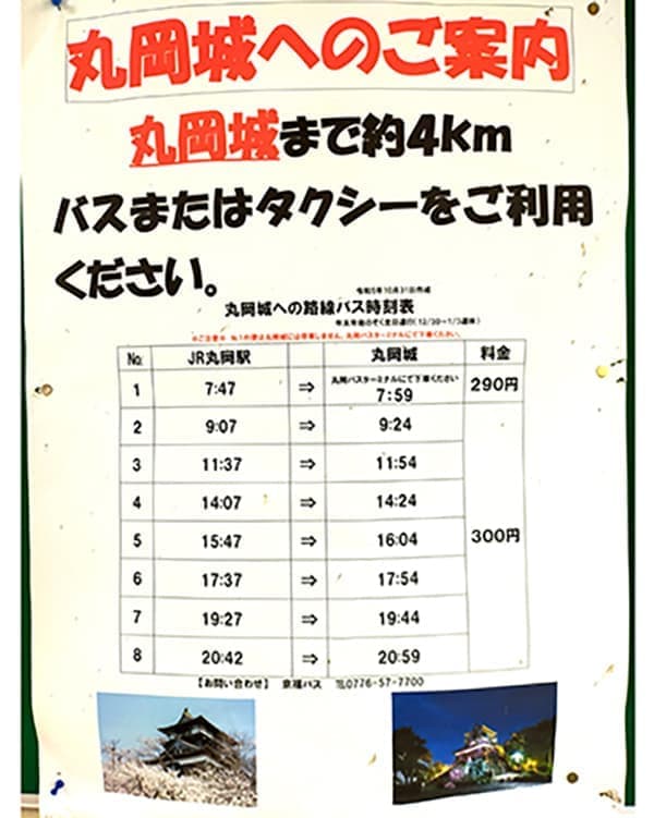 丸岡城行きのバスは本数が少ない。