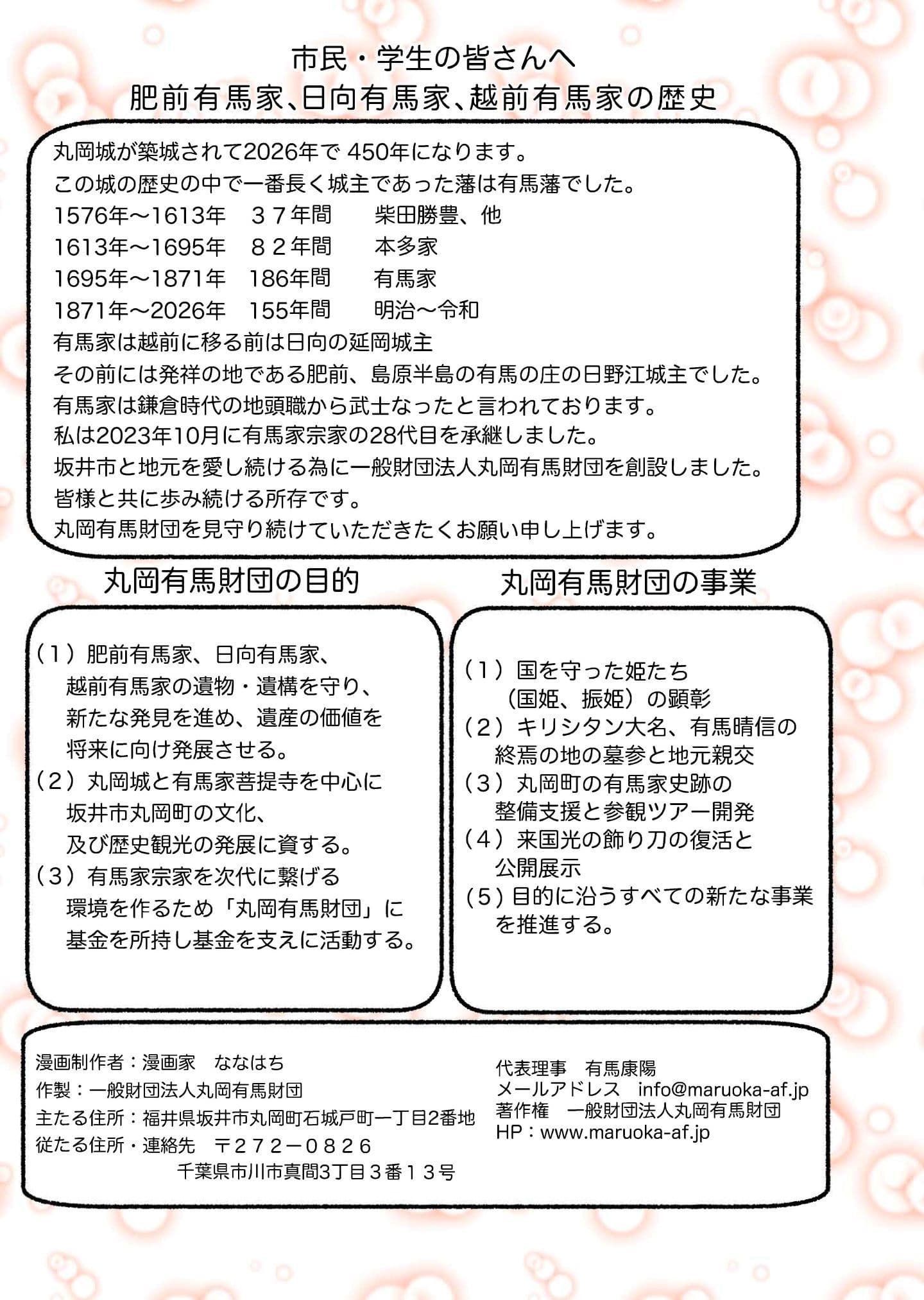 皆様、こんにちは。私がこの漫画の主人公の国姫です。ちょっと、漫画の国姫は私に似ていませんが、私の方が美人でしょう。皆様に親しんでもらいたいと思って、このホームページに登場しました。今後は、いろいろな場所で、いろいろな時期にお会いできると思います。ぜひ、国姫を推してくださいますよう、お願い申し上げます。