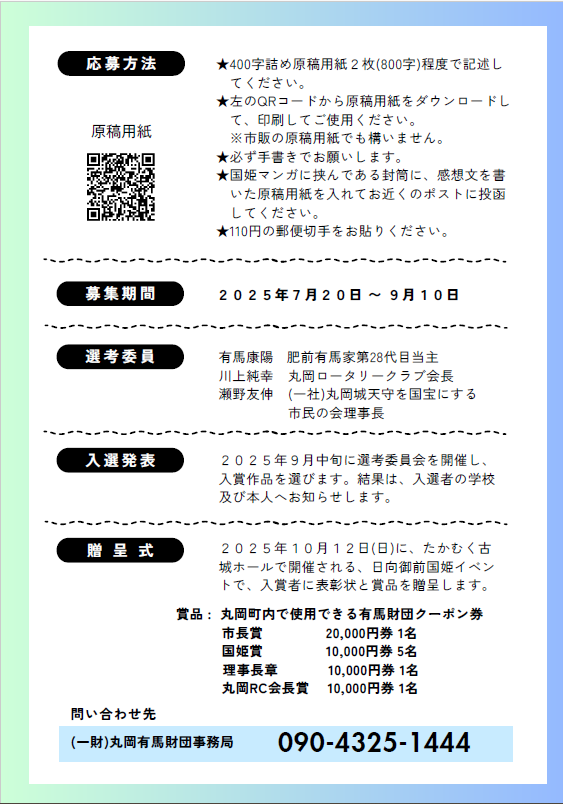 受賞者の表彰式は10月12日の古城まつりにて行います。